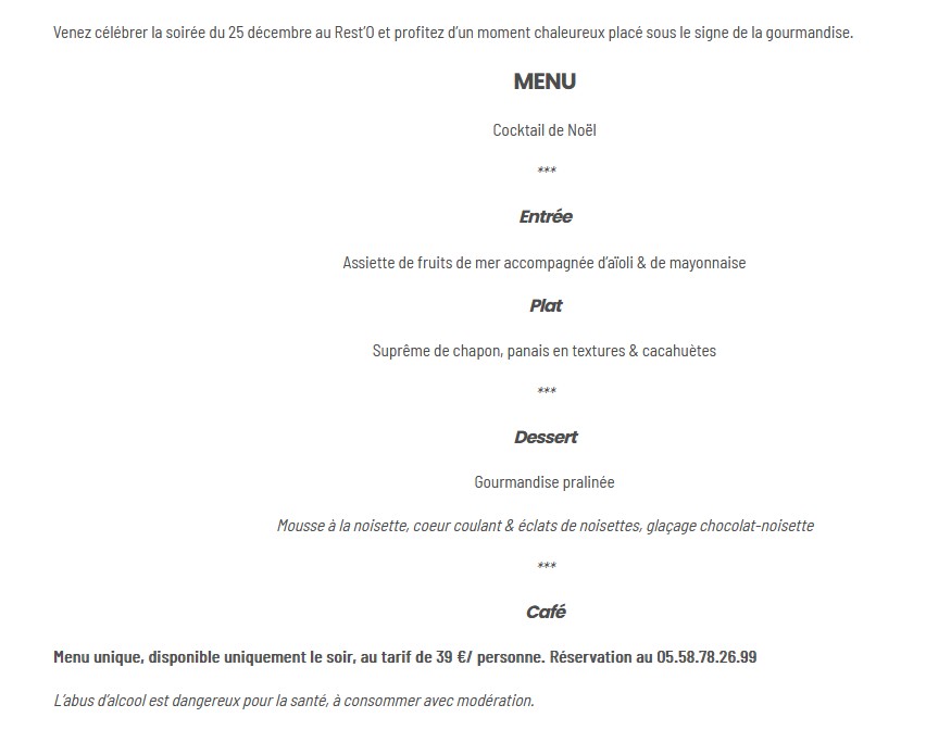 Découvrez les premiers menus de Noël et du Nouvel An concoctés par les chefs des restaurants de Biscarrosse et alentours... 🥂